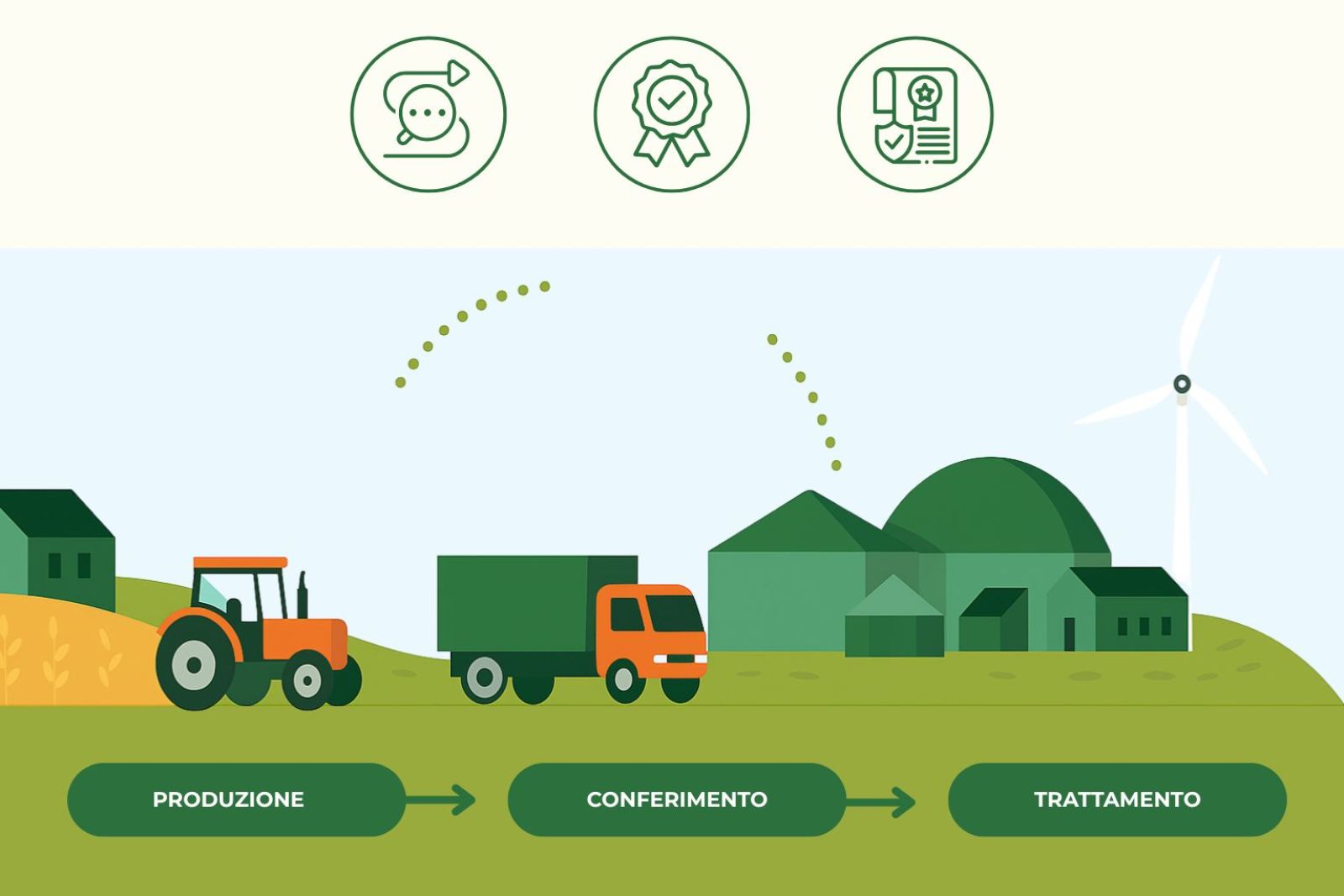Il cuore del progetto Bio Energy Network è un processo strutturato che consente di valorizzare i sottoprodotti agroalimentari trasformandoli in energia rinnovabile. La rete garantisce che ogni fase – dalla produzione, al conferimento, al trattamento – sia tracciata, certificata e conforme alla normativa vigente.